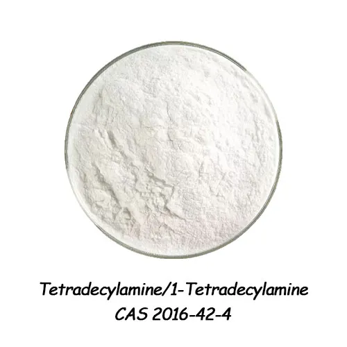 Mae tetradecylamin, a elwir hefyd yn 1-Tetradecylamine neu n-Tetradecylamine, yn gyfansoddyn alcylamine cadwyn hir. Mae'n bowdr gwyn gydag arogl amin arbennig. Mae'n gyfansoddyn sy'n anhydawdd mewn dŵr ond yn hydawdd yn y rhan fwyaf o doddyddion organig. Mae gan y sylwedd lipophilicity a gweithgaredd arwyneb, ac mae ganddo ystod eang o gymwysiadau mewn sawl maes. Fe'i defnyddir yn aml fel syrffactydd ïonig, asiant amddiffyn planhigion, iraid, meddalydd, asiant gwrthstatig, ac atalydd cyrydiad metel. Gellir ei ddefnyddio hefyd fel ychwanegyn ar gyfer catalyddion, llifynnau a resinau.